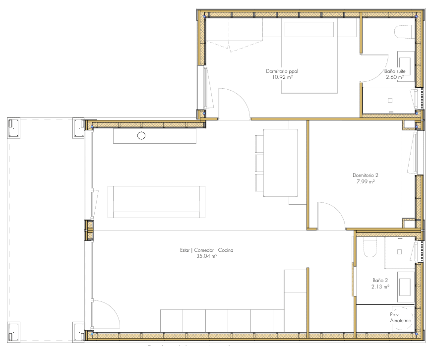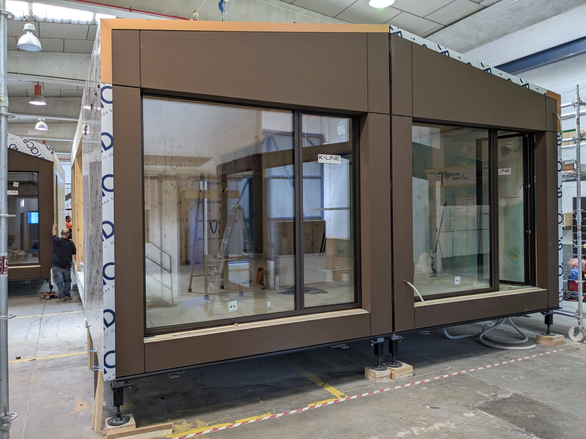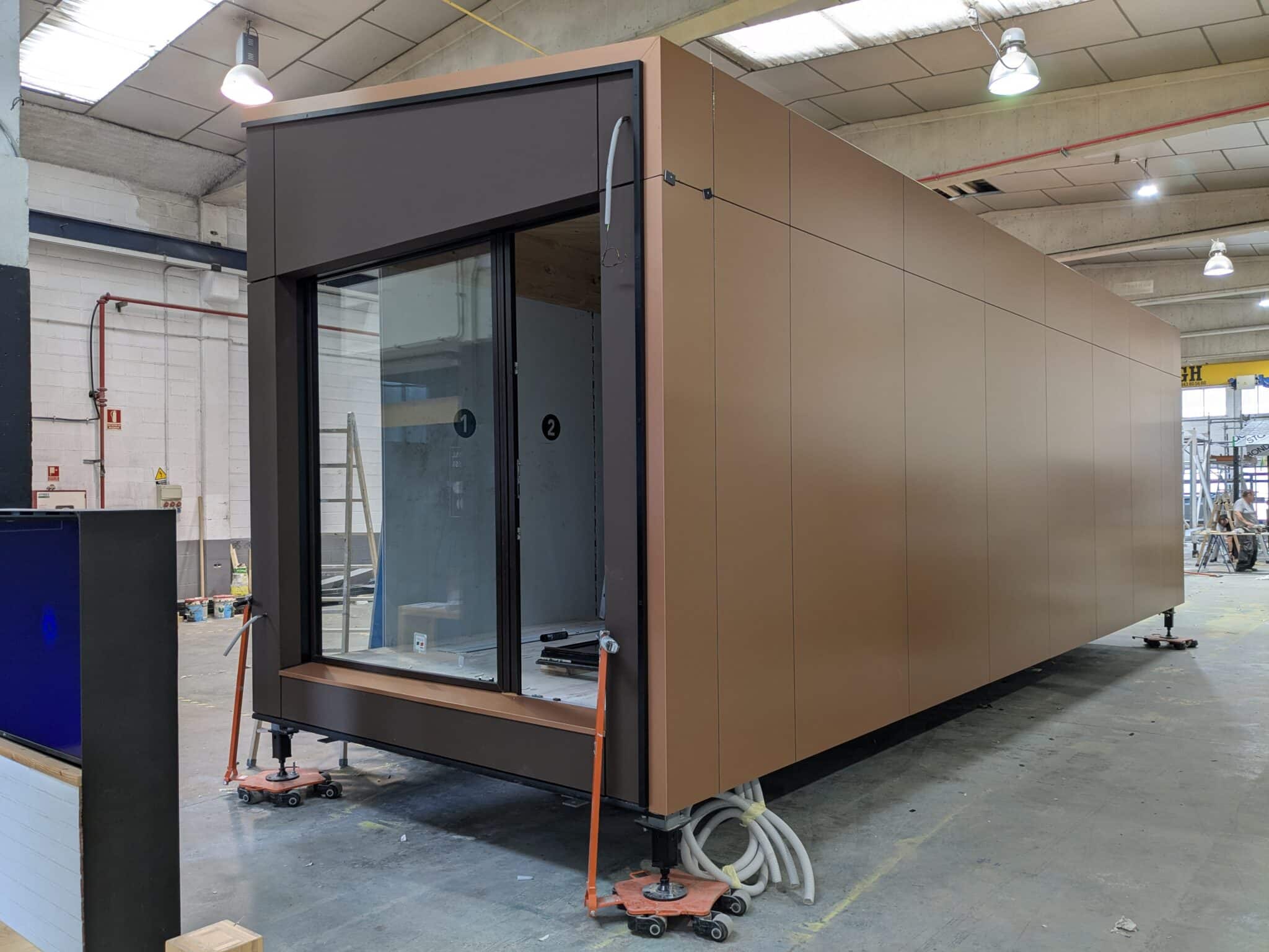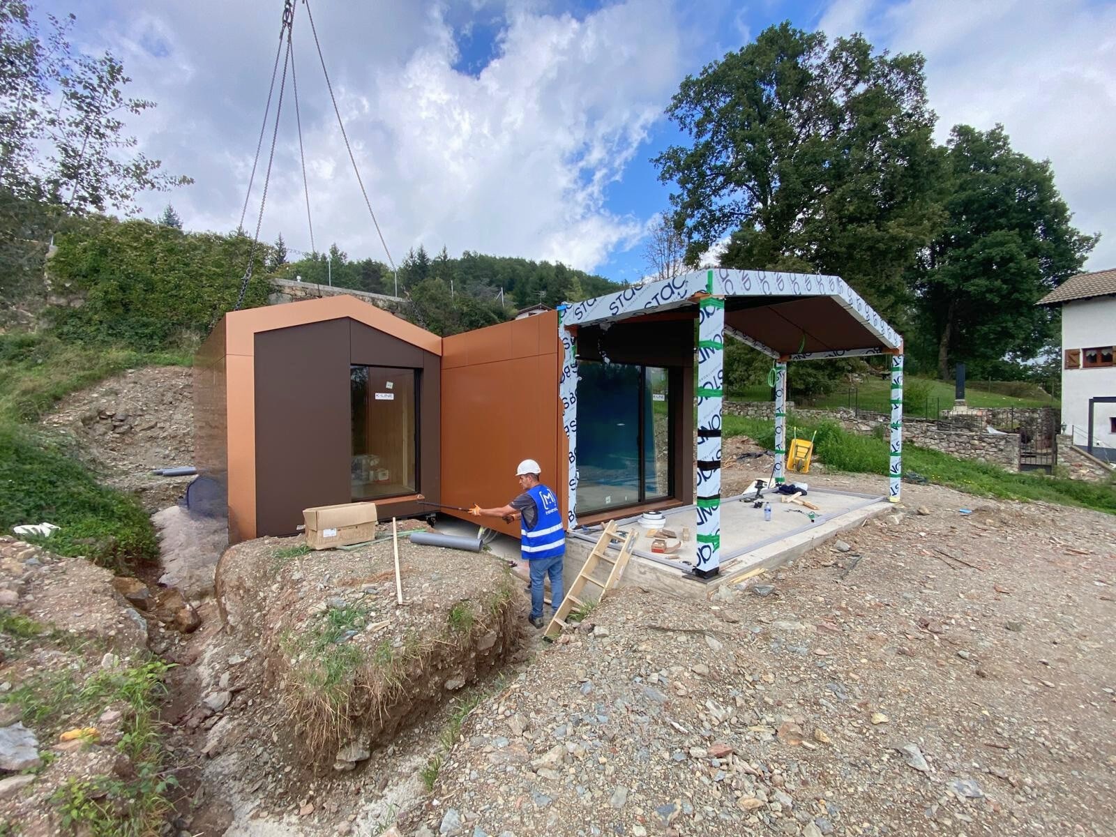 Vivienda de construcción modular de 84 m² en pleno Pirineo catalán. Diseñada por su propietaria —arquitecta— se construye de forma 100% offsite en tiempo récord bajo nuestro concepto DIY Minimal (Do it your Minimal) que permite entregar edificios modulares con estructura y envolvente únicamente. De esta forma el propio cliente o una empresa local pueden terminar instalaciones y acabados interiores. Compuesta por 3 módulos ensamblados in situ y con un porche modular que se adhiere a dos de ellos. Destaca la fachada personalizada en colores moca y óxido con el objetivo de lograr una adecuada integración en el entorno del Pirineo. Un claro ejemplo de cómo la construcción industrializada no está reñida con la alta calidad y alto nivel de personalización, donde confort, sostenibilidad y eficiencia marcan la diferencia.