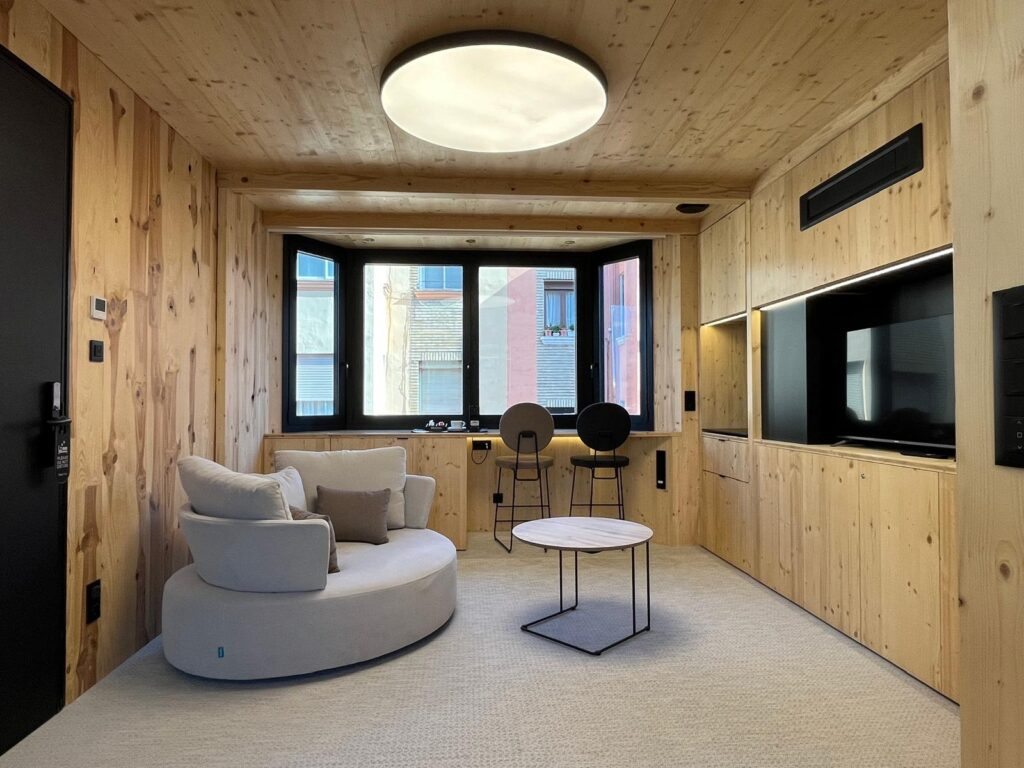 Un edificio singular y modular de 5 plantas instalado en plena calle Mayor de Zaragoza en tiempo récord, tan sólo 5 días. Construido bajo estándares pasivos y diseñado bajo el estándar Well Health – Safety, busca el bienestar del usuario, reducir la huella de carbono y conseguir la máxima eficiencia energética. Una demostración tangible de cómo la arquitectura modular industrializada puede ofrecer hoteles de alta calidad, sostenibles, personalizables y ejecutados un 50% más rápido.