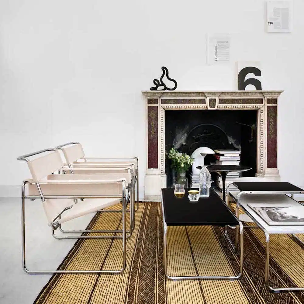 Por otro lado, destaca la Butaca Wassily, muy utilizada en oficinas y despachos, así como salas de espera o butaca comodín en salones. Diseñada en 1925 por Marcel Breuer cuando era director del taller de ebanistería de la escuela Bauhaus. Está fabricada en acero tubular y piel.